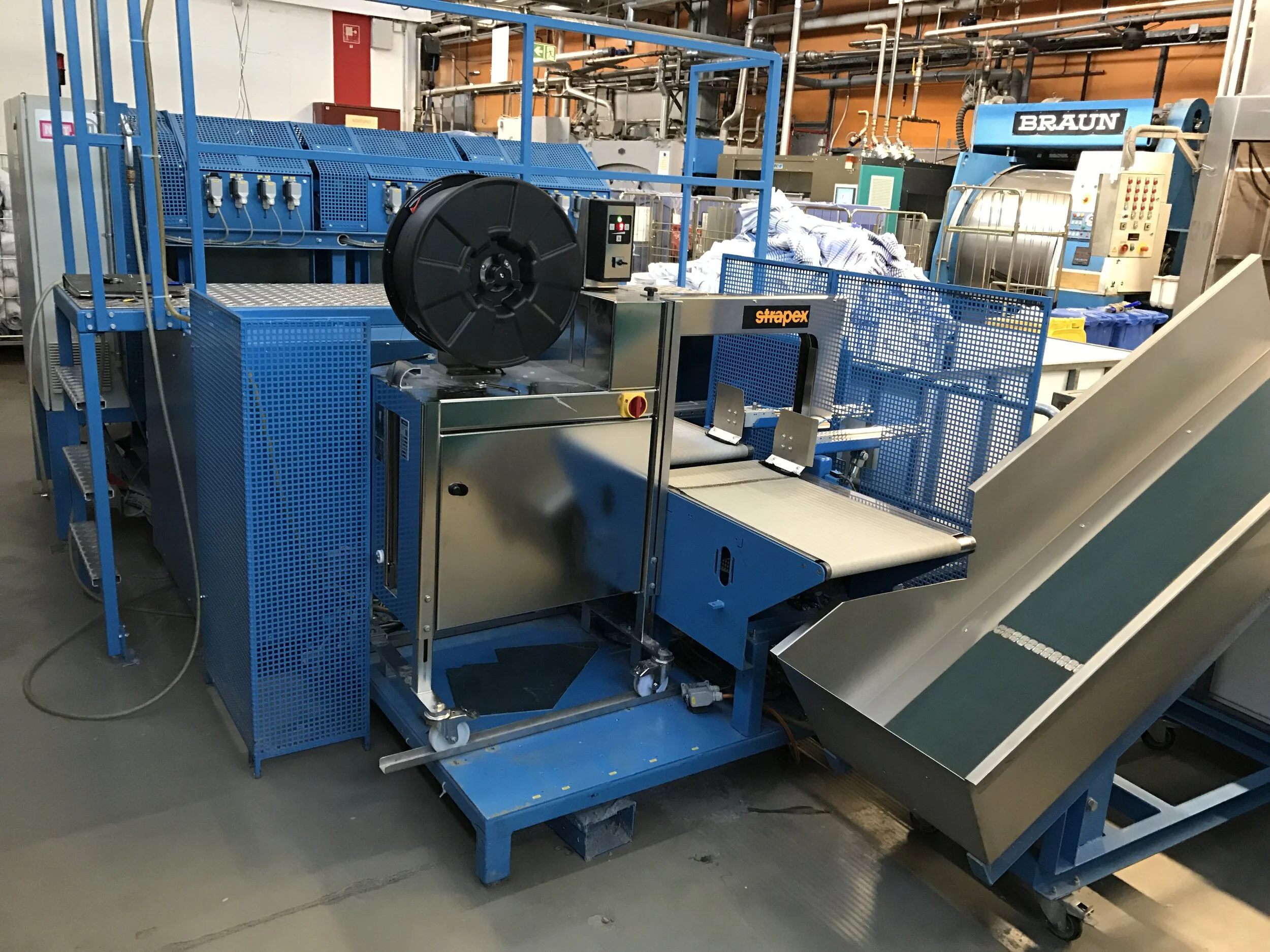 Eingabemaschine zum katengeraden Eingeben der Rollhandtücher.